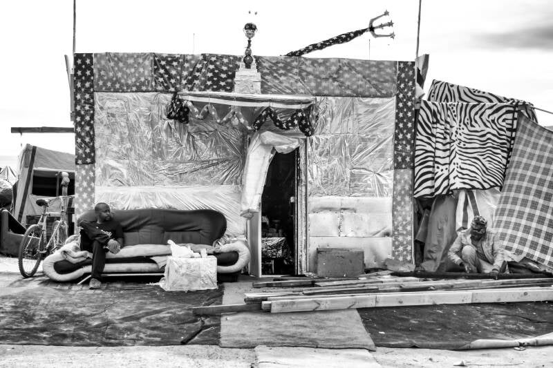 De 2015 à 2017, Sébastien PELLETIER-PACHOLSKI a fait de nombreux séjours professionnels dans la Jungle de Calais. Il en a rapporté un reportage photographique d'une grande humanité, qui raconte la vie dans cet espace sans règles et sans droit.